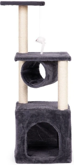 Drapak marki Petsi to wielopoziomowe centrum aktywności, które zapewnia kotu rozrywkę, komfort oraz możliwość realizowania naturalnych instynktów. Konstrukcja składa się z 4 poziomów, posiada dwie platformy widokowe, przestronny domek z miękkim wnętrzem oraz wygodny tunel, który pełni funkcję nie tylko ciekawego przejścia, ale również elementu zabawy i interakcji. Wisząca zabawka w postaci myszki dodatkowo zachęca pupila do aktywności. Sizalowe słupki stanowią idealne miejsce do ostrzenia pazurów. Naturalny materiał jest odporny na intensywne użytkowanie i jednocześnie bezpieczny dla zwierząt, co skutecznie ogranicza ryzyko zniszczeń domowych mebli. Cała konstrukcja wykonana jest z trwałej płyty MDF oraz wykończona przyjemnym w dotyku lnem i flanelą, co zapewnia nie tylko wygodę dla kota, ale i estetykę całego produktu.