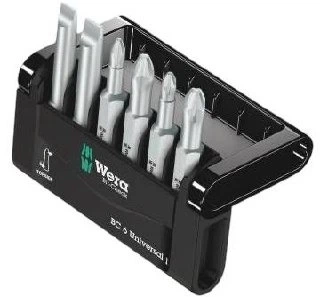6 bitów Wera o długości 50 mm, uporządkowanych i zajmujących niewiele miejsca w praktycznym pojemniku Bit-Check. Wytrzymałe bity o wysokiej wytrzymałości nadają się do uniwersalnego zastosowania. Bity skrętne (TZ) dodatkowo przejmują szczyty momentu obrotowego i absorbują je w strefie skrętnej. Zapobiega to przedwczesnemu zużyciu i wydłuża żywotność bitu.