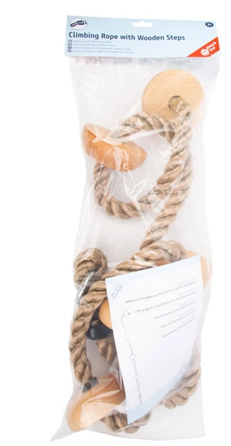 W górę i w drogę! Ta naturalnie wyglądająca lina wspinaczkowa ma pięć solidnych, litych drewnianych stopni. Ułatwia to dzieciom wspinaczkę i zapewnia pewny chwyt.