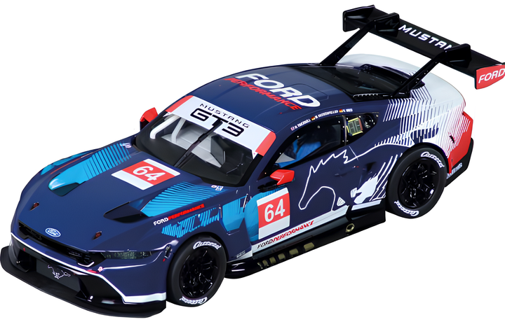 Wkrocz do świata wyścigów GT3 z Fordem Mustangiem GT3 „Ford Performance No.64” , niezwykle szczegółową repliką w skali 1:32, zaprojektowaną z myślą o kolekcjonerach i entuzjastach sportów motorowych. Ten model wniesie emocje wyścigowe na Twój domowy tor dzięki oficjalnej stylistyce Forda i precyzyjnej inżynierii Carrera.