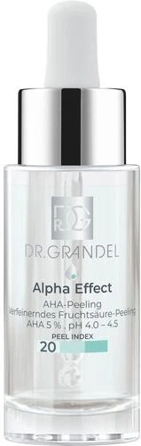Dr. Grandel Alpha Effect AHA-Peeling 20 to peeling na bazie kwasów owocowych, który pozostawia skórę czystą i świeżą. Żelowa formuła skutecznie złuszcza dzięki zawartości kwasów owocowych. Jednocześnie skóra jest oczyszczona, a nierówności zredukowane.