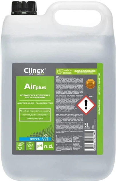 Clinex Air Plus – Świeża Bryza (5 l) to profesjonalny, gotowy do użycia odświeżacz powietrza, który skutecznie neutralizuje nieprzyjemne zapachy i pozostawia świeży, morski aromat „świeżej bryzy”. Produkt jest bezpieczny w użyciu, nie zawiera alergenów i może być stosowany w obecności ludzi.