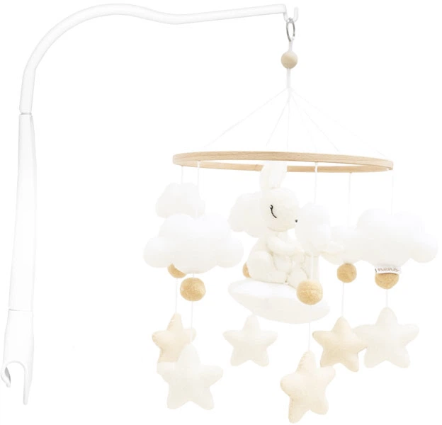• Prosty montaż pozwala na szybkie i bezproblemowe przymocowanie karuzeli do większości łóżeczek za pomocą dołączonego ramienia montażowego, bez użycia dodatkowych narzędzi.