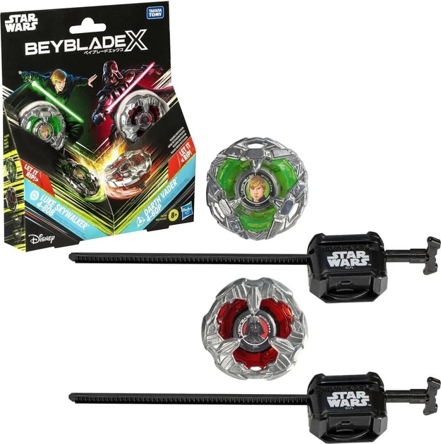 Zestaw Beyblade X Star Wars Luke Skywalker vs Darth Vader — to specjalna kolekcjonerska seria gier, łącząca świat Beyblade X i kultową sagę Star Wars. W zestawie znajdują się dwa bączki Beyblade i dwa mechanizmy uruchamiające, stylizowane na legendarnych bohaterów — Luke'a Skywalkera i Dartha Vadera.