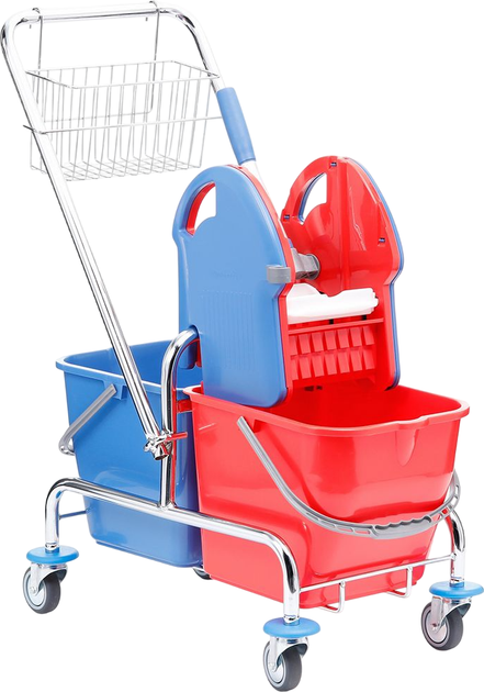 Візок для прибирання Merida. Двовідрний: 2 відра по 20 літрів, з металевим кошиком та пресом для швабр.