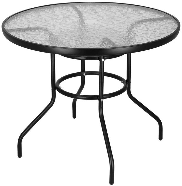 Stół ogrodowy Springos GF1021 to trwały i stylowy stół z blatem ze szkła hartowanego o grubości 5 mm, idealny na taras, balkon lub do ogrodu. Metalowa rama malowana proszkowo zapewnia wysoką odporność na warunki atmosferyczne, a okrągły blat o średnicy 90 cm tworzy komfortową przestrzeń do relaksu. Konstrukcja wytrzymuje obciążenie do 70 kg, posiada otwór na parasol o średnicy 44 mm oraz dodatkowe elementy pod blatem, zapewniające jego pionowe podparcie. Nogi o średnicy około 2.5 cm gwarantują stabilność, a przemyślana geometria zapewnia wygodne ustawienie. W zestawie znajduje się osłona otworu na parasol, a sam stół przeznaczony jest do samodzielnego montażu, co czyni go praktycznym i wszechstronnym dodatkiem do każdego wnętrza ogrodowego.