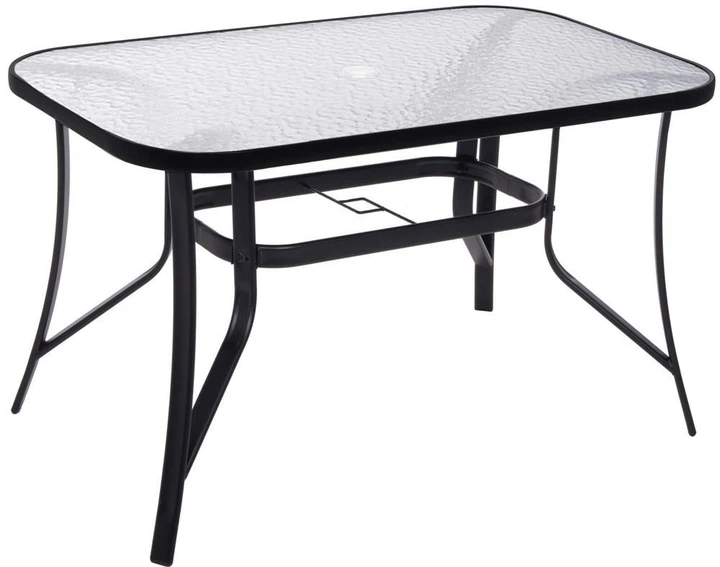 Stół ogrodowy Springos GF1039 to solidny i elegancki stół z transparentnym, teksturowanym blatem ze szkła hartowanego, idealny na taras, do ogrodu lub na balkon. Metalowa konstrukcja z antykorozyjną powłoką proszkową zapewnia trwałość, a blat o wymiarach 120 × 70 cm i grubości szkła około 4 mm wytrzymuje obciążenie do 100 kg. Stół ma 70 cm wysokości i wyposażony jest w otwór na parasol o średnicy 4 cm, dodatkowo zabezpieczony plastikową osłoną. Pod blatem znajduje się prostokątna konstrukcja o wymiarach 34.5 × 69 cm ze stabilizatorem na drążek parasolowy z drutu o grubości 5 mm. Nogi wykonane z owalnego profilu o wymiarach 42 × 15 mm zapewniają stabilność, a rozstaw nóg – 110 i 62 cm – gwarantuje wygodne ustawienie. Model przeznaczony jest do samodzielnego montażu, zawiera wszystkie niezbędne elementy montażowe i stanie się praktycznym i stylowym dodatkiem do Twojej strefy rekreacyjnej.
