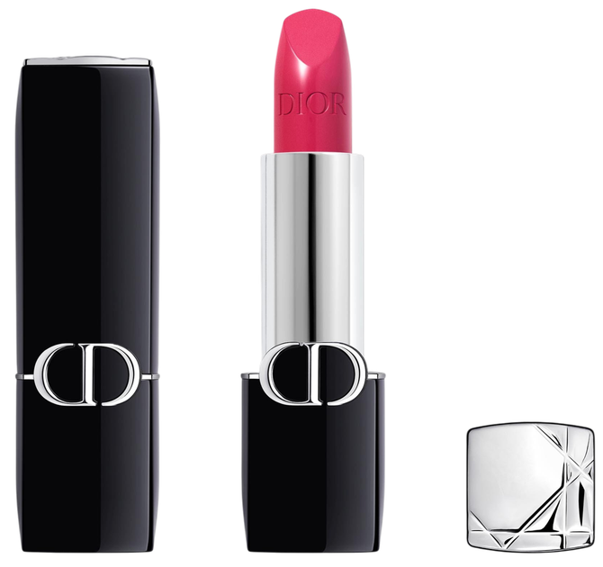 Rouge Dior, культовий бренд косметики Dior, представляє широку гаму відтінків у трьох варіантах фінішів. Ця стійка помада забезпечує 24 години комфорту завдяки зволожуючій формулі, збагаченій квітковим доглядом для губ, та текстурі, яка залишає губи м'якими на дотик.