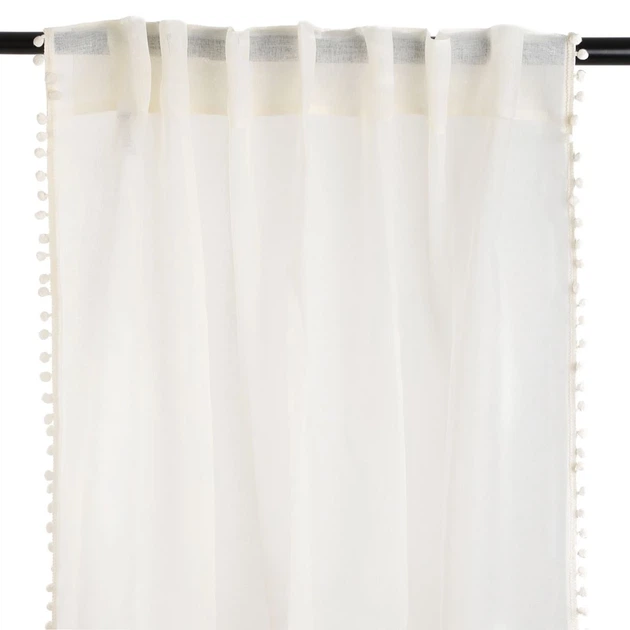 Firanka Homla Adi z pomponikami kremowa 140x250 cm (5904183851778)
