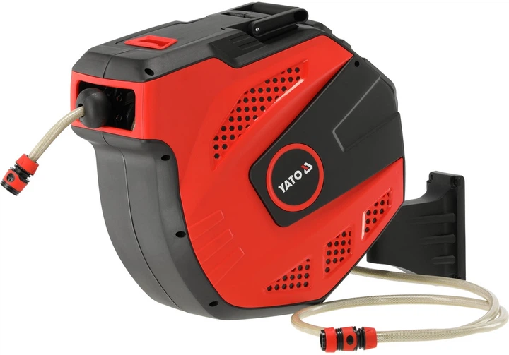 Automatyczny wąż ogrodowy YATO YT-24260 to praktyczne i wygodne rozwiązanie do podlewania, łączące 35-metrowy wąż PVC z automatycznym zwijaczem ściennym, który zapewnia schludne przechowywanie bez zagięć i splątań. Automatyczny mechanizm zwijania pozwala łatwo rozwinąć wąż na żądaną długość i szybko schować go do wytrzymałej obudowy z polipropylenu (PP), chroniącej przed uszkodzeniami i promieniowaniem UV. Średnica węża 1/2", ciśnienie robocze do 120 PSI (0.8 MPa) i standardowe przyłącze 3/4" sprawiają, że jest on kompatybilny z większością systemów ogrodowych, a dodatkowy 2-metrowy wąż zasilający ułatwia podłączenie. Montaż na ścianie oszczędza miejsce, a uporządkowane przechowywanie utrzymuje porządek. Idealny do podlewania trawników, rabat kwiatowych, mycia tarasów, mebli ogrodowych, samochodów i codziennych prac ogrodowych.