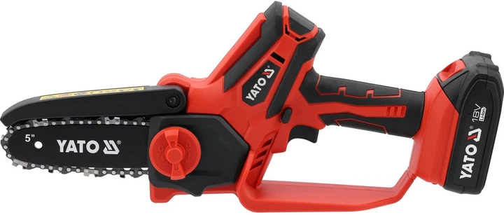Akumulatorowa pilarka łańcuchowa YATO YT‑828113 to kompaktowa i lekka mini pilarka łańcuchowa przeznaczona do szybkiego i precyzyjnego cięcia gałęzi, krzewów i drobnych elementów drewnianych bez zbędnego wysiłku. Zasilanie akumulatorowe 18 V zapewnia mobilność i stabilną moc, a niska waga (1.3 kg) i wyważona konstrukcja pozwalają na wygodną pracę jedną ręką nawet w trudno dostępnych miejscach. Prowadnica o długości 6 cali (158.5 mm) i częściowo szlifowany łańcuch zapewniają czyste, kontrolowane cięcie, co korzystnie wpływa na zdrowie drzew i ogólny wygląd ogrodu. Automatyczne smarowanie, system szybkiego napinania łańcucha i hamulec odśrodkowy zwiększają bezpieczeństwo i skracają czas konserwacji, a miękka, ergonomiczna rękojeść zapewnia pewny chwyt podczas pracy. Piła rozwija prędkość posuwu łańcucha 5.6 m/s, ma skok 0.3 cala, grubość ogniwa napędowego 1.1 mm i 28 ogniw, co czyni ją skutecznym narzędziem do codziennych prac ogrodowych.