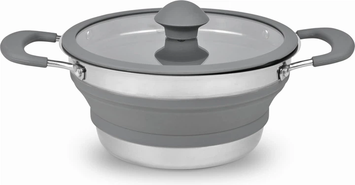 Ten kompaktowy garnek to idealny towarzysz każdej wyprawy – od biwaku po karawaning. Dzięki składanym ściankom z silikonu zajmuje minimum miejsca, a jednocześnie oferuje pełną funkcjonalność klasycznego garnka.