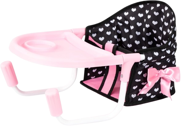 Zintegrowana tacka na jedzenie ułatwia karmienie lalki. Dzięki wysokiemu oparciu lalka siedzi wyprostowana. Dzięki prostemu systemowi śrub, siedzisko stołowe jest odpowiednie dla różnych szerokości blatu (od 1.5 do 4.5 cm) i można je łatwo zamocować na miejscu.
