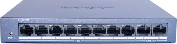 Model DS-XS0110-P dysponuje 8 portami PoE, co umożliwia podłączenie wielu kamer oraz innych urządzeń monitorujących. Dodatkowo, posiada 2 porty Uplink, co ułatwia integrację z systemami rejestracji obrazu, takimi jak NVR czy DVR.