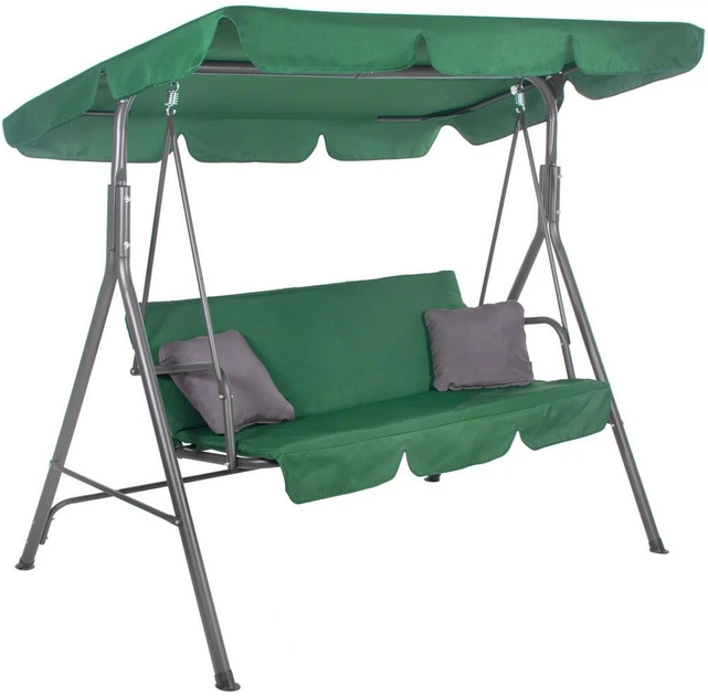 Huśtawka ogrodowa Springos Luna GS0029 to stylowa i trwała, trzyosobowa huśtawka zaprojektowana z myślą o komfortowym wypoczynku na świeżym powietrzu, wykonana w połączeniu zieleni, szarości i grafitu. Posiada stabilną stalową ramę z powłoką proszkową zabezpieczającą przed rdzą oraz wodoodporny materiał poliestrowy, który gwarantuje trwałość i wygodę użytkowania. Miękkie poduszki i szerokie siedzisko zapewniają komfort, a regulowany daszek pozwala na regulację osłony w zależności od nasłonecznienia. Huśtawka wytrzymuje obciążenie do 220 kg, wyposażona jest w sprężyny zapewniające płynne huśtanie oraz antypoślizgowe nakładki na nogi dla stabilności. Dzięki przemyślanym wymiarom – 170 × 110 × 150 cm, szerokości siedziska 125 cm, wysokości podestu 50 cm – idealnie nadaje się do ogrodu, na taras lub do ogrodu. W zestawie znajduje się zestaw montażowy, instrukcja, dwie sprężyny, poduszka na siedzisko i dwie poduszki dekoracyjne, dzięki czemu montaż jest szybki i łatwy.