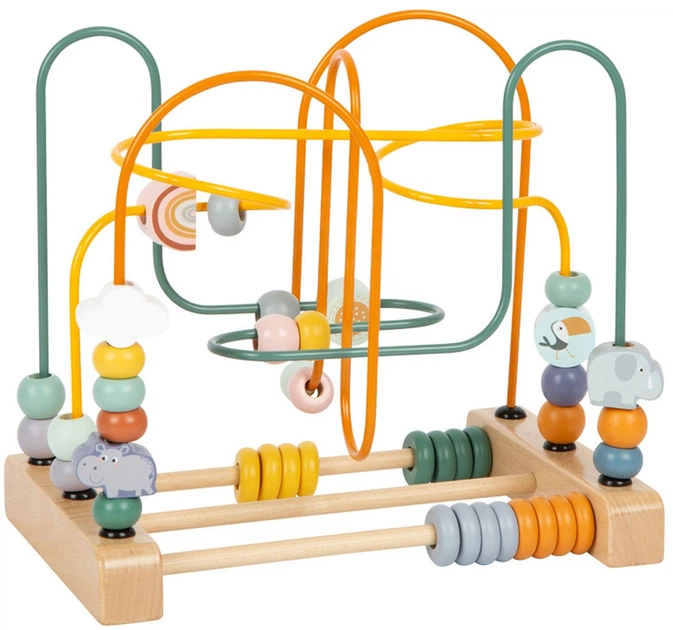 Вправно керуючи дерев'яними намистинами та чарівними тваринами сафарі цього класичного лабіринту з бісеру в сучасному дизайні сафарі по трьох переплетених металевих рейках, ви розвинете дрібну моторику та координацію рук і очей, забезпечуючи тривале задоволення.