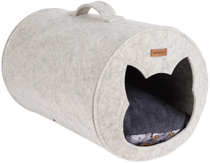 Унікальний дизайн тунелю зацікавить вашу кішку з першого погляду, а закриті стіни створюють відчуття безпеки та знижують рівень стресу. Завдяки зручній ручці тунель легко переносити, зберігати або брати з собою в подорож, забезпечуючи комфорт у новому середовищі.