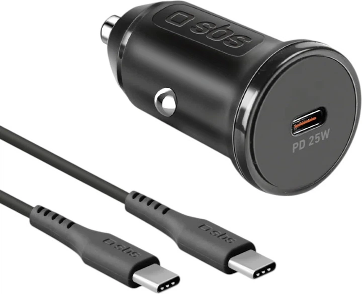 Ładowarka samochodowa SBS 25W USB-C PD + kabel USB-C - USB-C 1 m Black (TECRKITTCPD25W)