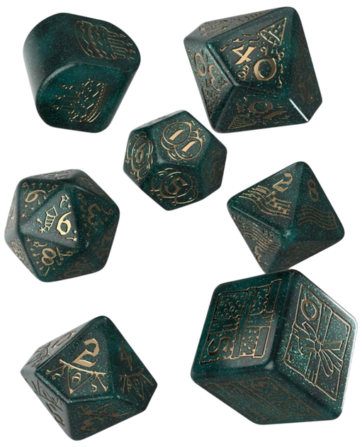 Stworzony z myślą o świętowaniu wprowadza atmosferę zabawy i magii do każdej rozgrywki. Zestaw zawiera 7 kości ozdobionych kolorowymi serpentynami, balonami i motywami urodzinowymi, idealnie odwzorowującymi radość tego dnia, a złote grawerunki oraz brokatowy zielony kolor nadają im elegancji. To świetny pomysł na prezent dla fanów RPG i gier planszowych, którzy uwielbiają połączenie zabawy z pięknymi przedmiotami kolekcjonerskimi!