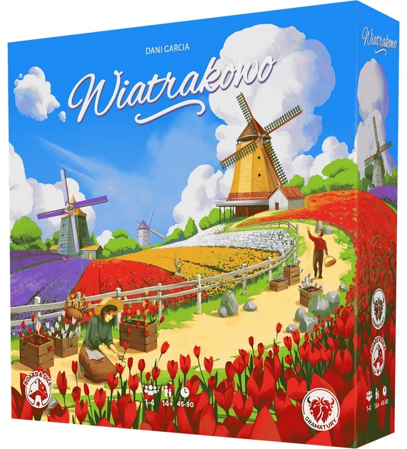 Wiatrakowo to gra, w której stawiacie wiatraki i sadzicie tulipany, ale co to znaczy w praktyce? Jeśli dobrze zbudujecie swój silniczek, to korzystając z nowatorskiego systemu wyboru akcji na kołach wiatraka, gra będzie otwierać dla Was swoje wrota z każdym kolejnym ruchem. Każda kolejna tura będzie coraz ciekawsza i coraz bardziej satysfakcjonująca, a elementy Waszych maszyn zazębią się nie tylko dosłownie, ale i w przenośni.