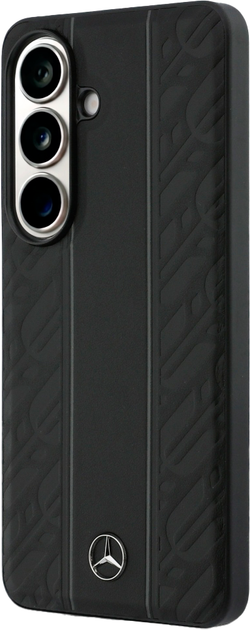 Tylną część zdobi charakterystyczny wzór opon oraz metalowe logo Mercedes-Benz, które podkreślają elegancki i sportowy charakter etui.