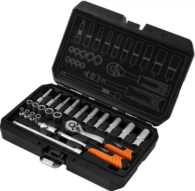 Zestaw kluczy nasadowych NEO TOOLS 10-231 to kompaktowy komplet narzędzi przeznaczony do prac mechanicznych i montażowych wymagających precyzji. Narzędzia w standardzie 1/4" sprawdzają się podczas serwisowania drobnych elementów, prac instalacyjnych oraz przy obsłudze podzespołów w ograniczonej przestrzeni.