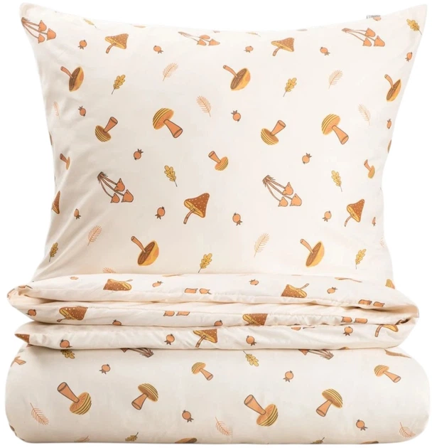 Dodaj do swojej sypialni odrobinę leśnej magii i prawdziwego komfortu dzięki kompletowi pościeli SHROOM. Oryginalny nadruk z uroczymi grzybami na delikatnym tle w kolorze ecru natychmiast odświeża wnętrze, wypełniając je nową energią i tworząc wyjątkową atmosferę sprzyjającą relaksowi. Ten niezwykły wzór z pewnością spodoba się zarówno dorosłym, jak i dzieciom, zamieniając każdą noc w małą podróż do bajkowego lasu, a łóżko — w główny stylowy akcent pokoju.