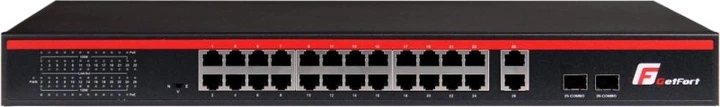 GetFort GF-226G-24P-250 to wydajny 24-portowy przełącznik sieciowy z obsługą PoE, stworzony z myślą o sieciach korporacyjnych, systemach monitoringu wizyjnego i złożonych infrastrukturach sieciowych. Urządzenie łączy porty Fast Ethernet, dwa porty Gigabit COMBO/SFP oraz obsługę Long Range PoE, co zapewnia elastyczne połączenie i stabilną pracę sieci na dużych odległościach.