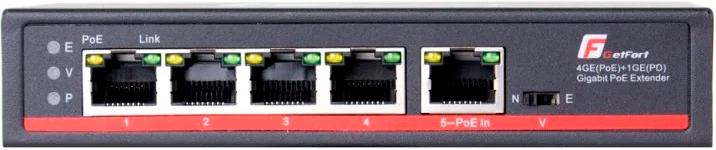 GF-PE51G to niezawodny 5-portowy przełącznik sieciowy GIGABIT, stworzony z myślą o instalacjach wewnętrznych. To rozwiązanie zapewniające szybką i stabilną sieć dla kamery IP PoE. Jedną z jego najważniejszych cech jest podwójne zasilanie - PoE-IN oraz DC IN, co sprawia, że można go zasilać na dwa różne sposoby, zwiększając elastyczność i niezawodność działania.