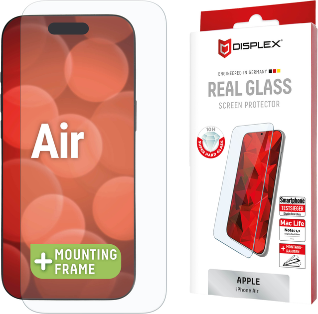 Szkło ochronne Displex jest produkowane z dokładnością do 5/100 mm względem konturów smartfona, dzięki czemu idealnie pasuje do Twojego iPhone’a Air.