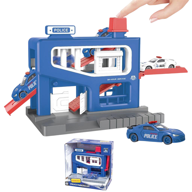Parking policyjny z samochodami – zestaw zabawkowy Police Parking Lot