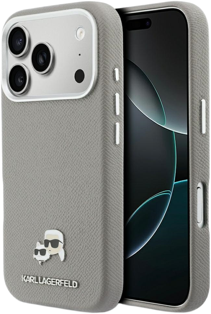 Etui Karl Lagerfeld Karl & Choupette Head Pins Saffiano MagSafe do Apple iPhone 17 Pro Grey (3666339599812)
