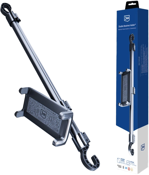 3mk up double Headrest Holder™ to niezastąpione rozwiązanie dla użytkowników smartfonów i tabletów, którzy chcą wygodnie korzystać ze swoich urządzeń podczas podróży samochodem. Ergonomiczny i kompatybilny uchwyt znacząco zwiększa komfort oglądania filmów, grania lub korzystania z aplikacji w trakcie jazdy.
