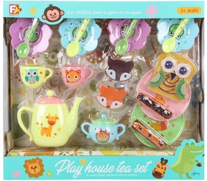 Zestaw herbaciany dla dzieci ze zwierzątkami – Play House Tea Set to kolorowy komplet naczyń, który pozwala dzieciom odgrywać scenki z organizowania przyjęć herbacianych. Urocze ilustracje przedstawiające zwierzątka sprawiają, że zestaw przyciąga uwagę i zachęca do kreatywnej zabawy.