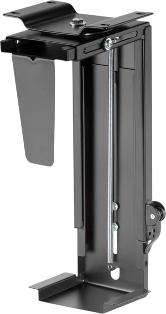 Uniwersalny uchwyt na komputer PC firmy DIGITUS jest przeznaczony do montażu pod blatem biurka. Może pomieścić obudowę komputera o wysokości od 30 do 51 cm i szerokości od 8.8 do 20.3 cm. Nie ma ograniczeń co do głębokości obudowy, o ile nie przekracza ona maksymalnej nośności 10 kg. Uchwyt umożliwiający łatwe zablokowanie żądanej wysokości i szerokości pozwala na płynną regulację obudowy komputera – bez użycia narzędzi. Cały uchwyt można obracać o 360°, na przykład w celu ułatwienia dostępu do złączy z tyłu. Komputer jest umieszczony wysoko nad podłożem, co zapobiega gromadzeniu się kurzu i brudu, ułatwiając czyszczenie pod biurkiem. Wygodny, wszechstronny produkt do wielu popularnych obudów komputerowych.