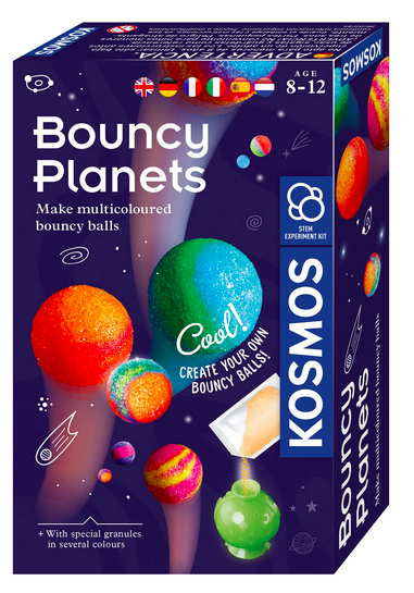 Kosmos Bouncing Planets Making to kreatywny zestaw naukowy, który pozwala dzieciom tworzyć własne „planety-piłeczki”, które podskakują. Za pomocą specjalnych form i granulek dzieci mogą wytwarzać różnokolorowe kulki przypominające planety Układu Słonecznego.