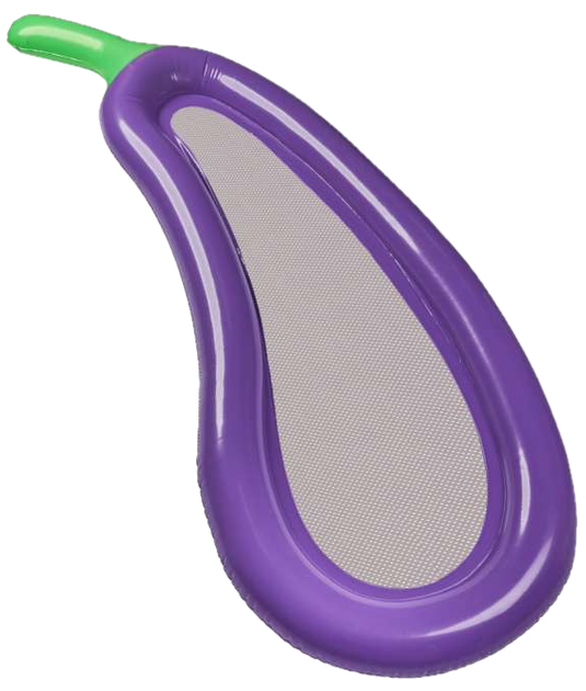 Dmuchany materac w kształcie bakłażanu dostarczy wrażeń znacznie bardziej ekscytujących niż konsumpcja niejednego grillowanego bakłażana. Na tę nietypową wersję owocu składa się pompowany obrys fioletowego bakłażana z zielonym ogonkiem.