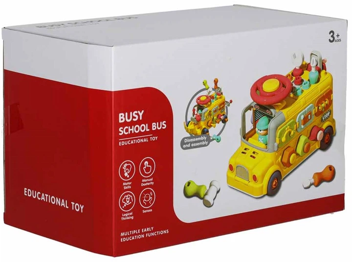 Zabawka edukacyjna Ikonka Autobus manipulacyjny do skręcania 6 w 1 + śrubki i śrubokręty (KX2880) (5903039770065). Ten kolorowy manipulacyjny autobus to wszechstronny zestaw edukacyjny małego majsterkowicza, który od razu przyciąga uwagę dziecka. Realistyczna kierownica, śruby, pokrętła i liczne ruchome elementy tworzą idealną bazę do codziennej, twórczej zabawy. Bogactwo mechanizmów sprawia, że maluch angażuje się na długie chwile, a każda aktywność rozwija jego zdolności manualne i logiczne. Całość tworzy inspirujący zestaw, stanowiący wartościowy element rozwoju dziecka.