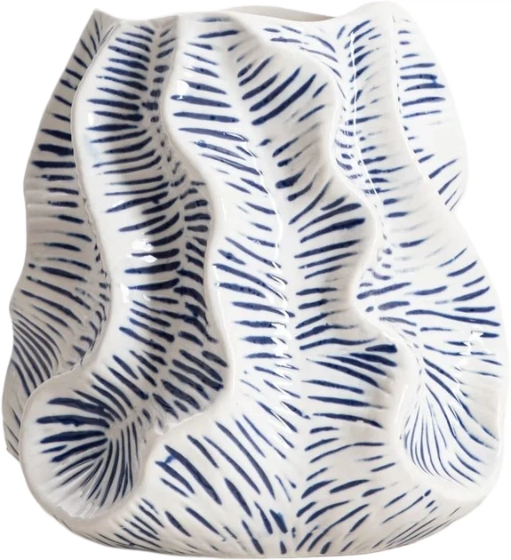 • Kontrastowy wzór w odcieniach bieli i granatu podkreśla dekoracyjny charakter wazonu