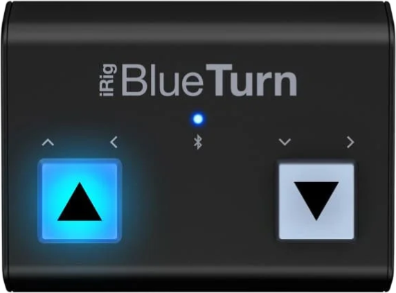 iRig BlueTurn jest kompaktowym urządzeniem służącym do nożnej zmiany stron do iPhone'a/iPada, komputera Mac i urządzeń z Androidem, przy pomocy nóg, uwalniając w ten sposób ręce w tracie występu. Wyposażony jest w 2 dobrze widoczne, podświetlane, miękkie przyciski, które możesz obsługiwać nogami w celu zmiany strony, przewijania tekstu, zmiany slajdu itp. w swojej ulubionej aplikacji lub programie.