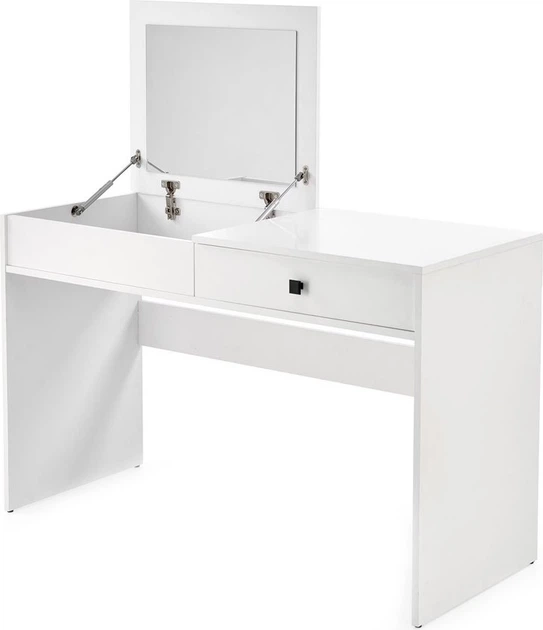 Model wyposażony jest w wygodny blat roboczy oraz szufladę do przechowywania kosmetyków, akcesoriów i biżuterii. Dzięki przemyślanej konstrukcji może służyć jako stolik kosmetyczny lub kompaktowe biurko.