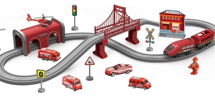 Dynamiczny zestaw kolejowy inspirowany pracą straży pożarnej to doskonała propozycja dla dzieci, które lubią akcję, budowanie i odgrywanie realistycznych scenariuszy. Nowoczesny czerwony pociąg w stylu Pendolino przyciąga uwagę i zapewnia ekscytującą zabawę dzięki efektom dźwiękowym oraz płynnej jeździe po torach.