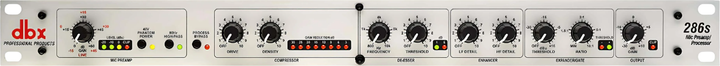 DBX 286S to profesjonalny przedwzmacniacz mikrofonowy typu channel strip, który łączy wysokiej jakości preamp z zaawansowanym procesorem dynamiki. Urządzenie oferuje kompletny zestaw narzędzi do obróbki sygnału audio, w tym kompresor, de-esser, enhancer oraz bramkę szumów z ekspanderem. Dzięki temu możliwe jest uzyskanie czystego, zbalansowanego i profesjonalnego brzmienia bez konieczności stosowania dodatkowych procesorów efektów.