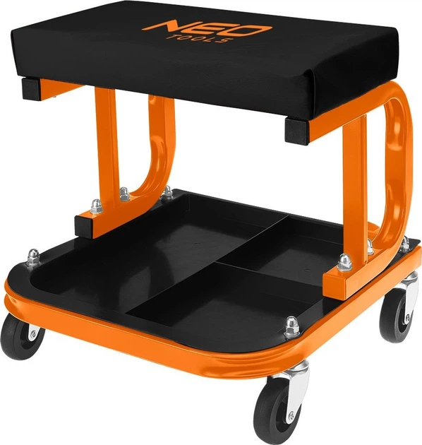 Stołek warsztatowy na kółkach z półką na narzędzia 11-604 marki NEO TOOLS to praktyczne wyposażenie każdego warsztatu.