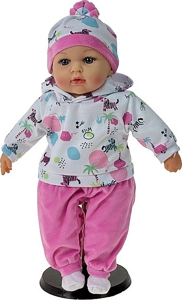 • Wygodny, sportowy styl: Bobas jest gotowy na spacer lub zabawę na dywanie! Ma na sobie: Mięciutki, kolorowy dresik, który nie krępuje ruchów lalki podczas przytulania, Dopasowaną czapeczkę, która dodaje mu uroku i chroni główkę "maluszka".