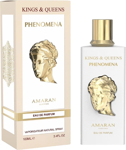 Woda perfumowana dla kobiet Amaran Kings & Queens Phenomena to zapach dla tych, którzy są przyzwyczajeni do przyciągania uwagi. Jest to kompozycja damska, która pięknie się rozwija, jest pewna siebie i od pierwszych sekund wyraźnie kojarzy się z kobiecą urodą klasy premium. Pierwsze nuty otwierają się szlachetnym ylang-ylang, świeżą trawą, bergamotką i wodnym jaśminem, tworząc dosłownie magnetyczną aurę — jasną, kobiecą, lekką i hipnotycznie przyciągającą.