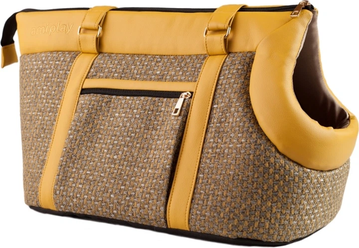 Amiplay Morgan w rozmiarze L w kolorze żółtym to większa wersja torby, odpowiednia dla średniej wielkości małych psów lub większych szczeniąt. Wyróżnia się żywą, modną barwą, która sprawia, że torba wygląda nowocześnie. Konstrukcja została wykonana z trwałych materiałów gwarantujących bezpieczeństwo podczas transportu. Wnętrze torby jest miękkie, dzięki czemu zwierzę czuje się wygodnie. Duże otwory wentylacyjne dbają o właściwą cyrkulację powietrza. Uchwyt jest solidny i dobrze wyprofilowany, co ułatwia przenoszenie cięższego pupila. Zamek błyskawiczny pracuje płynnie i pozwala szybko otworzyć torbę. Model jest zaskakująco lekki, mimo większych wymiarów. Zewnętrzna kieszeń umożliwia przechowywanie niezbędnych drobiazgów. Żółty kolor dodaje torbie nowoczesności i łatwo go utrzymać w czystości. Konstrukcja jest odporna na intensywne użytkowanie. To idealna torba dla opiekunów, którzy potrzebują przestronniejszego i stylowego rozwiązania do transportu pupila.