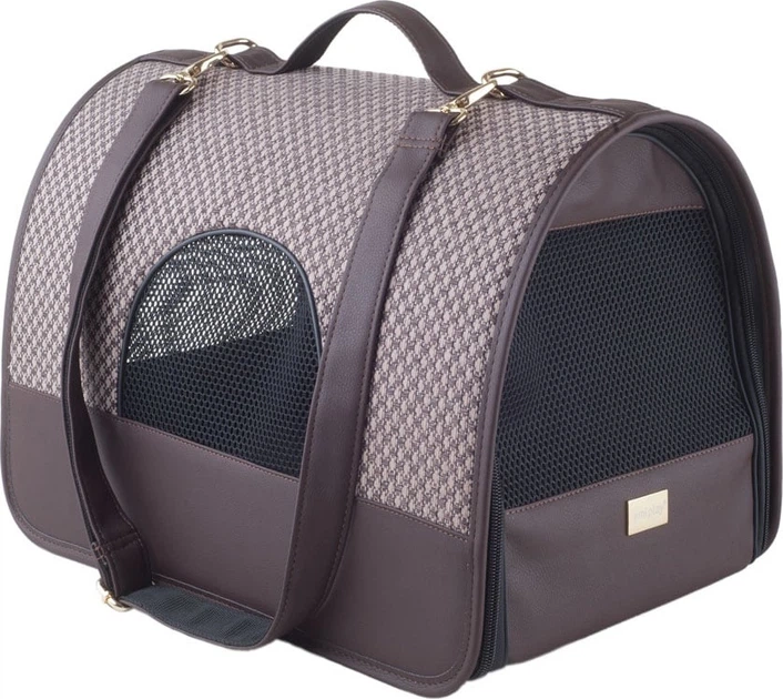 Transporter zapinany jest na suwak w bardzo wygodny sposób. Dzięki siatce znajdującej się na każdym boku całość jest świetnie wentylowana, co znacznie zwiększa komfort podróży. Na górze znajduje się uchwyt umożliwiający noszenie transportera w dłoni oraz długi pasek, który pozwala w wygodny sposób nosić go na ramieniu.