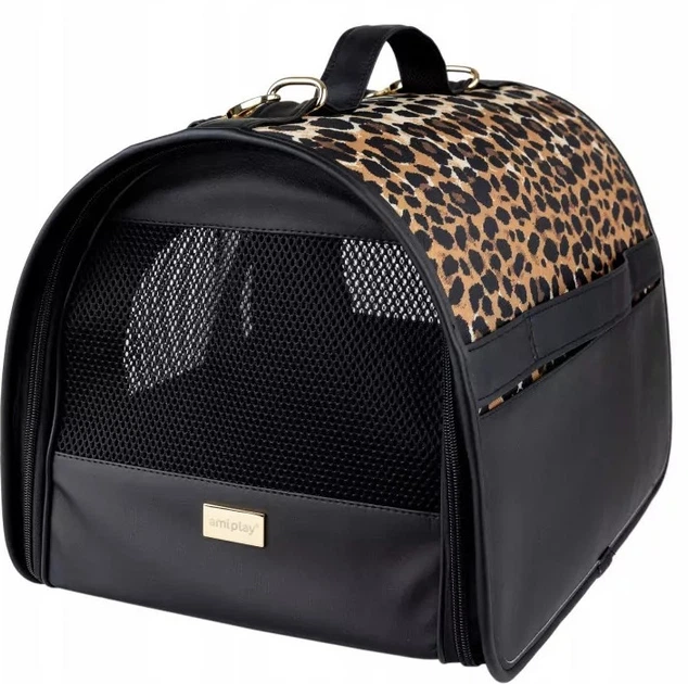 Torba transportowa Amiplay Safari w rozmiarze M z panterkowym wzorem to kompaktowa i praktyczna torba dla małych psów. Stylowy wzór nadaje torbie nowoczesny i efektowny wygląd. Wykonana jest z trwałych materiałów zapewniających bezpieczeństwo pupila podczas transportu. Miękkie wnętrze gwarantuje wygodną podróż. Otwory wentylacyjne umożliwiają prawidłową cyrkulację powietrza. Solidne uchwyty ułatwiają wygodne przenoszenie torby w każdych warunkach. Zamek błyskawiczny działa niezawodnie i pozwala szybko otworzyć torbę. Model posiada praktyczną kieszeń na drobne akcesoria. Torba jest lekka i poręczna, co zwiększa komfort użytkowania. Panterkowy materiał jest łatwy w utrzymaniu czystości i odporny na codzienne użytkowanie. Konstrukcja torby jest trwała i stabilna. To świetna torba dla opiekunów szukających funkcjonalnej i efektownej torby transportowej dla psa.