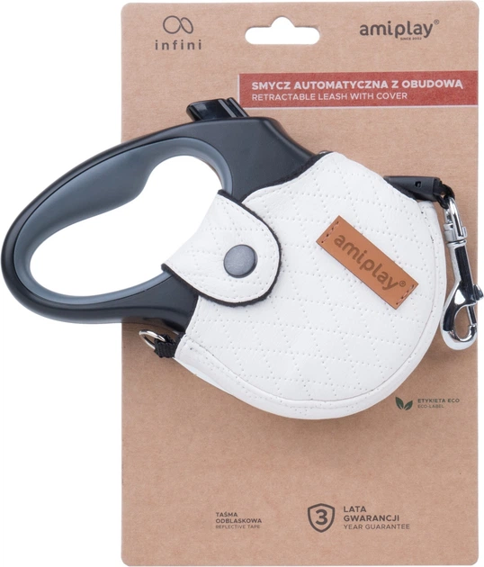 Smycz automatyczna z serii Infini New York to świetne rozwiązanie na każdy spacer z psem. Obudowa jest bardzo trwała dzięki podwójnej warstwie materiału, co skutecznie chroni całość przed uszkodzeniami. Posiada innowacyjny design co dodaje klasy i pozwoli wyróżnić się z tłumu. Dodatkowo obudowę można dowolnie wymienić, co pozwoli dopasować smycz do każdej stylizacji.